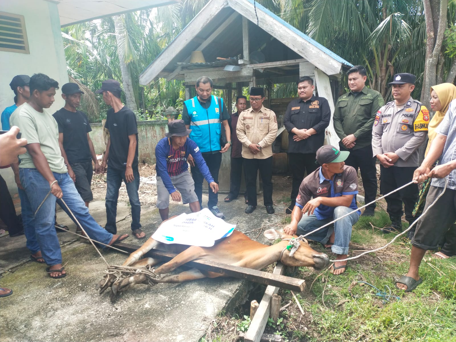 Bantuan sapi program zakat YBM PLN untuk dibagikan kepada masyarakat, sesuai asnaf penerima zakat disaksikan Ketua DPRD Bengkalis Septian Nugraha, Camat Bantan Rafli Kurniawan, Manajer PLN Bengkalis Muhammad Ashqalany Aulia Rahman, Pj Kades Teluk Pambang Sariyono dan tokoh masyarakat.
